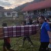 Asmiwati pun ditandu warga agar bisa melewati longsor menuju ambulance yang menunggunya.