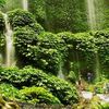 Air terjun yang dikelilingi pepohonan hijau ini memiliki jembatan yang dapat digunakan untuk